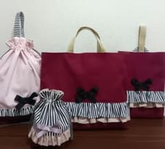 いちごのフリル付きキルティングバッグ3点セット 入園入学 二回使用