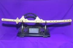 国宝梨地螺鈿金装餝剣 金属製 総重量2.9kg 模造刀 剣掛け台付★中古品