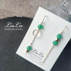 ハンドメイド 青緑色ビーズ ピアス