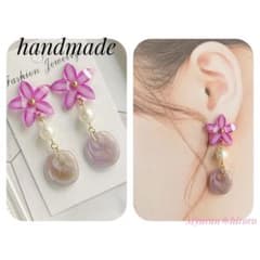 ハンドメイド花モチーフ 大ぶりイヤリング(イヤリングのみ)