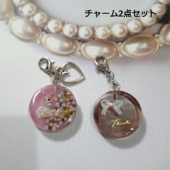 キーホルダー✨レジン✨シマエナガ✨チャーム✨押し花✨ミックス✨桜✨可愛い✨桃AA