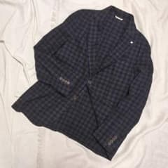モンテドーロMONTEDOROウールコットンシングルテーラードジャケット48紺茶