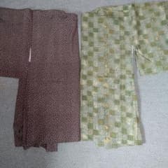 伝統的な着物 茶色と緑のパターン