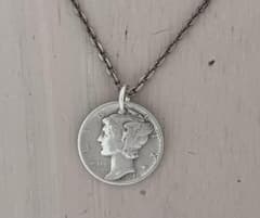 本物アメリカのマーキュリーヘッドコイン(銀貨)、ペンダントトップ