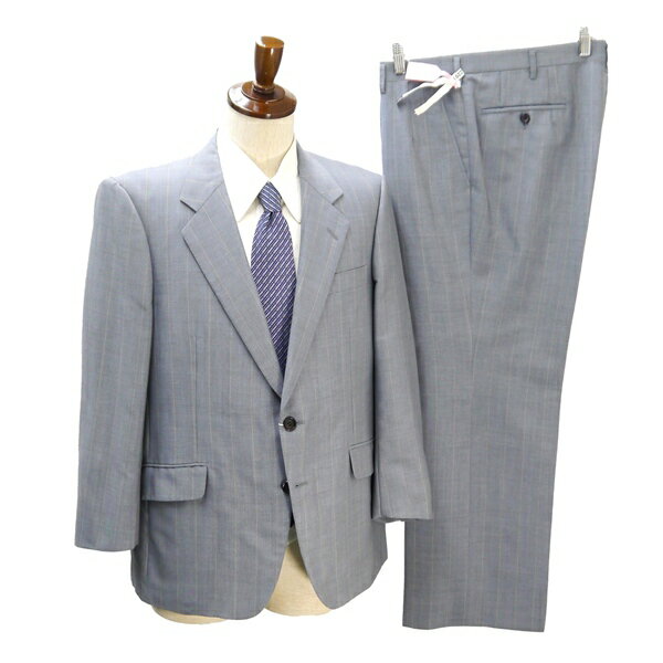 IAM THOMSON 2つボタン シングルスーツ BE4 L 水色がかったグレー ストライプ ワンタック 春夏 1-681517-27 5NJ052 【送料無料】【中古】【メンズビジネス】202510