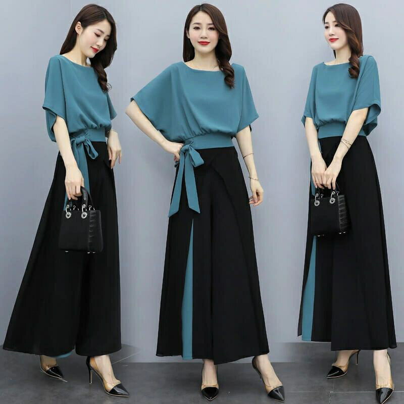 セットアップ レディース シフォン パンツドレス 2点セット ワイドパンツ パーティードレス パンツ ブ
