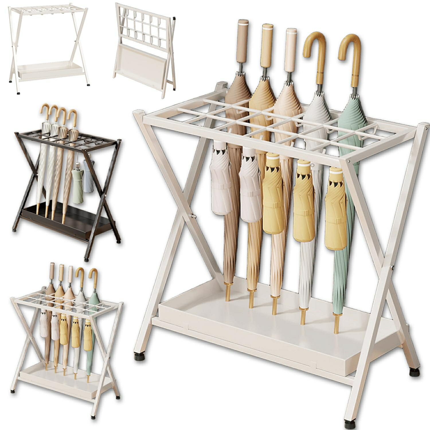 傘立て 業務用 長傘 省スペース 傘立 傘立ておしゃれ 折りたたみ オフィス用傘たて 大容量 28本収納 玄関収納 傘収納 錆びにくい 水受け皿付き 傘置き 折りたたみ傘対応 簡単お手入れ 安定 会社 お店 学校 ブラック ホワイト プレゼント ギフト