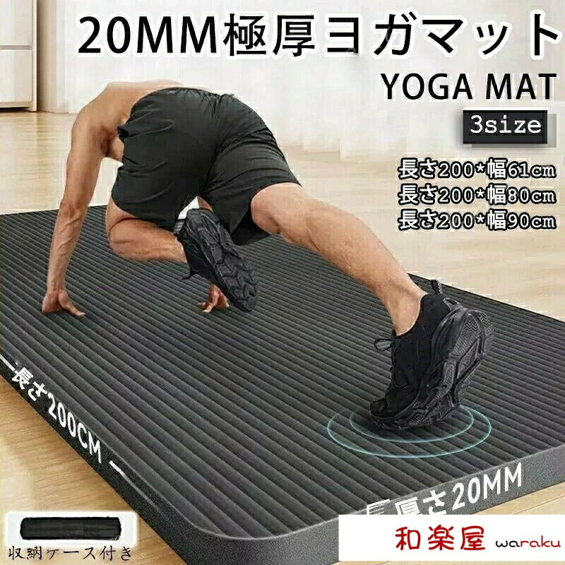 『送料無料』ヨガマット 200*90*20MM トレーニングマット 収納袋付き ヨガ ピラティス エクササイズ マット 初心者 ゴム ストレッチ トレーニング ダイエット ストレッチマット エクササイズマット 軽量 幅広 大判 柔らかい おしゃれ