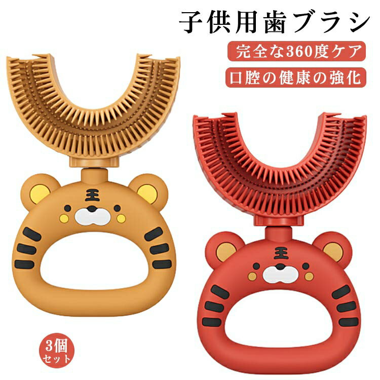 歯ブラシ 3個セット 赤ちゃん用 2−6歳 U 字型歯ブラシ 3個セット 子供用歯ブラシ 6−12歳 ソフト シリコンブラシヘッド 歯ブラシ 可愛い虎デザイン 経口クリーニングツール