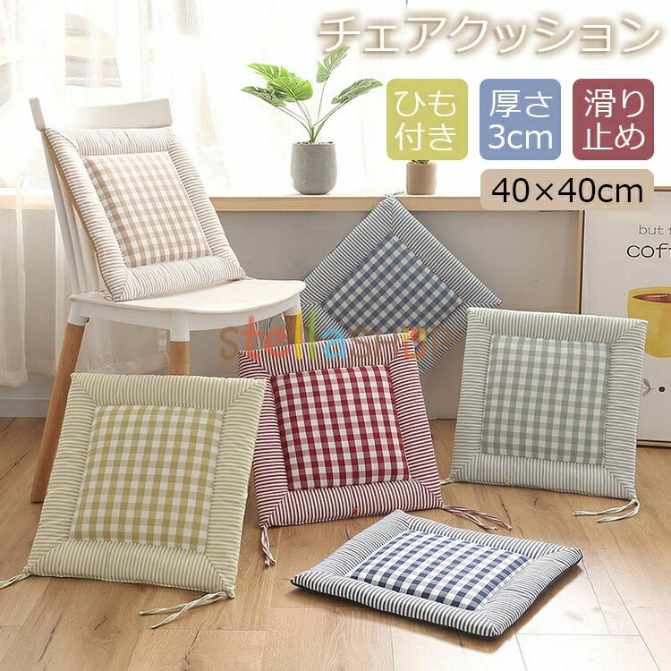 チェアマット 座布団 角型 クッション コットン チェアパッド チェア クッション 40cm×40cm 45cm×45cm 50cm×50cm おしゃれ クッション 正方形 暖かい 快適 ひも付き チェアマット 低反発 椅子用 クッション 座布団 蒲団 畳 和室 寝室 リビングルーム 滑り止め 送料無料