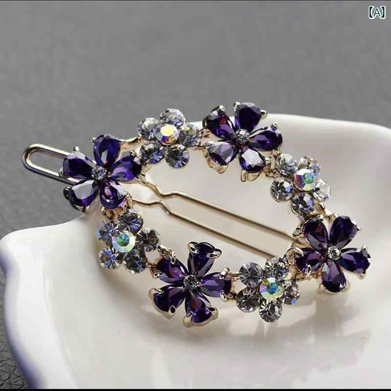 ヘアアクセサリー レディース 韓国 かわいい フラワー ラインストーン 亜鉛合金製 サイド バンス 高級感 上品 おしゃれ 前髪 ハーフアップ 髪飾り 秋冬