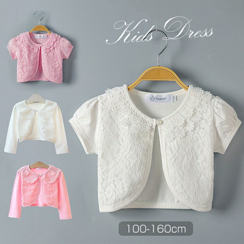 ボレロ ベビー レース 半袖 結婚式 女の子キッズボレロ 結婚式 ジャケット 長袖 レースボレロ キッズ カーディガン 子供用ケープ 白 ショール フォーマル 衣装 女児 100cm-160cm 羽織 入園式 卒園式 入学式 七五三 ピアノ発表会 披露宴