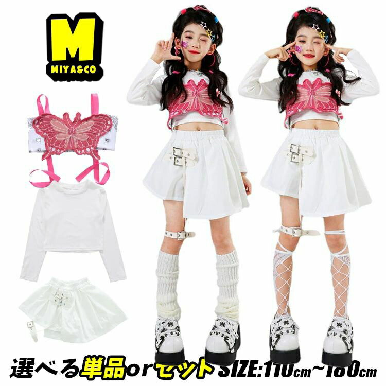 薔薇色 エプロン 蝶ビスチェ ベスト ホワイト ガーターベルトスカート 白 チアダンス チアガール チア ダンス 衣装 ガールズ 韓国 K-POP 可愛い キッズダンス 衣装 セットアップ ステージ衣装 応援団 団体服 演出服 発表会 ストリート ヒップホップ HIPHOP