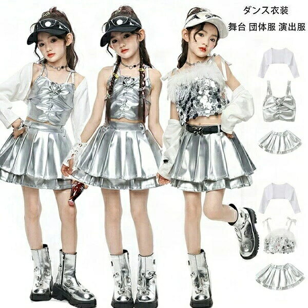 ダンス衣装 セットアップ 舞台 トップス スカート 長袖 衣装 ゆったり シルバー スパンコール キャミソール 団体服 演出服 ヒップホップ Hiphop k-pop チアダンス ダンスウエア ジャズダンス jazz 発表会 応援団 ラムショー 公演服