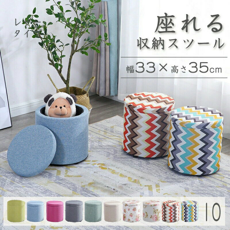 収納スツール 収納ボックス 座れる おしゃれ ラウンドスツール 丸椅子 チェア 腰掛け 椅子 イス いす チェアー 1人掛け リビング ボックス 収納付き 蓋付き おもちゃ箱 軽量 玄関 化粧椅子ドレッサーチェア かわいい 高級感 インテリア おしゃれ