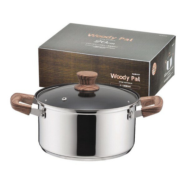 両手鍋 IH対応 ステンレス 20cm ガラス蓋付 内面ふっ素加工 ウッディパル