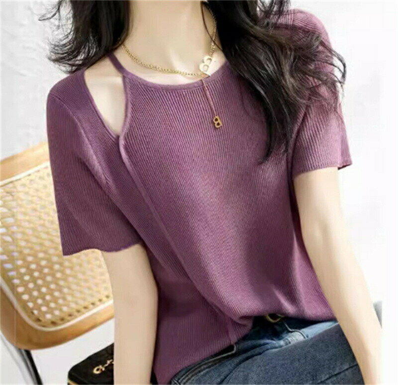Tシャツ レディース 春夏 40代 半袖 ニットトップス 無地Tシャツ レション ショット丈ニットソー 薄手 ゆったりカットソー おしゃれ 大人 50代 30代 カジュアル