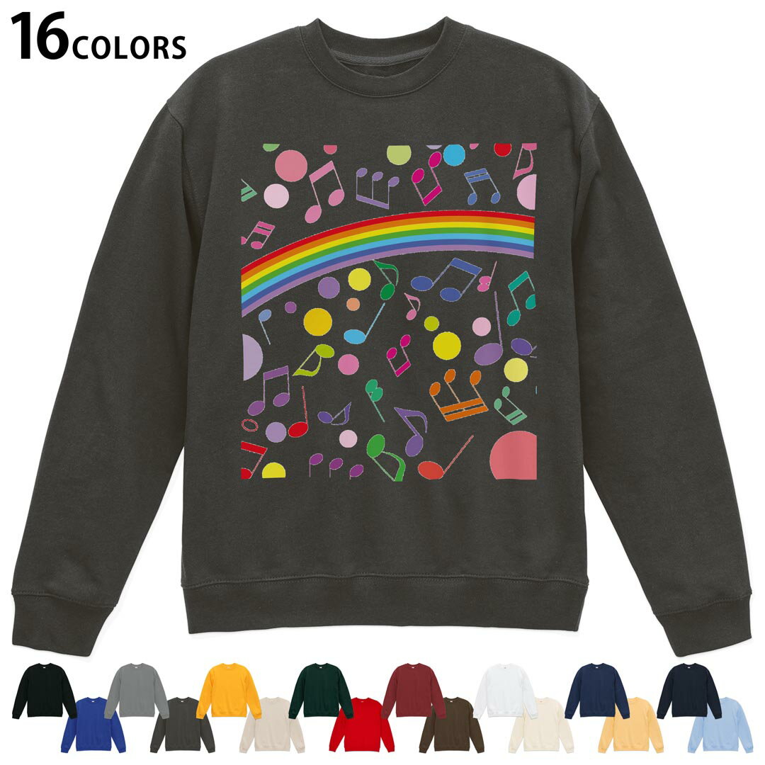 選べる16カラートレーナー メンズ レディース ユニセックス 長袖 デザイン S M L XL 2XL sweatshirt trainer スウェット 007196 音符 カラフル