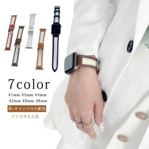 アップルウォッチ バンド 革 キャンバス 無地 シンプル series7 series6 series se シリーズ5 4 3 2 1 apple