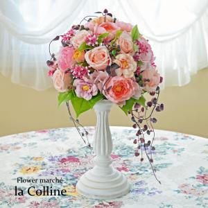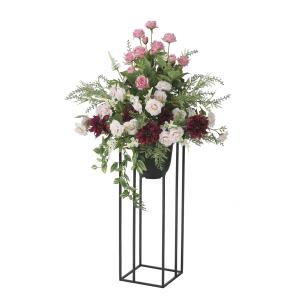 バラとラナンキュラスのラウンドスタンドアレンジ(ピンク)【アーティフィシャルフラワー(高級造花)アレンジ】
