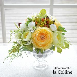 バラとラナンキュラスのラウンドスタンドアレンジ(イエロー)【アーティフィシャルフラワー(高級造花)アレンジ】
