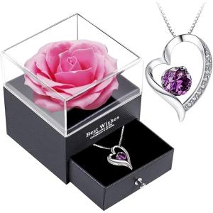 ソープフラワー ギフト バラ プレゼント 女性 収納ケース付き ネックレス レディース 赤いバラ(赤いバラ+パープルネックレス)