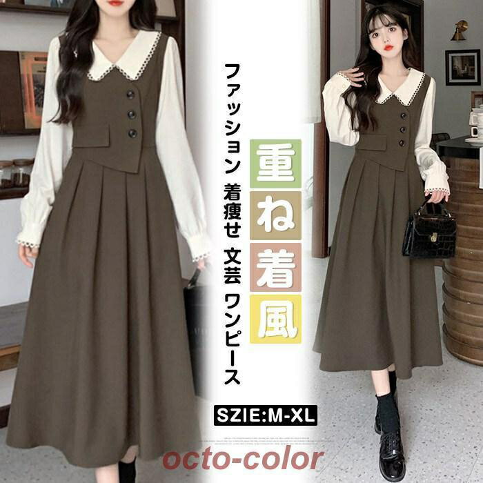 ワンピース レディース レトロ Point10倍! 女子ワンピ 長袖 春 秋 重ね着風 日系 中高生 クラシカル カワイイ 通勤 通学 ファッション