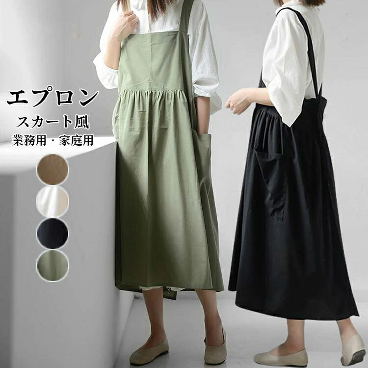 エプロン おしゃれ 保育士 北欧 ワンピース ドレス カフェ 撥水 無地 バッククロス 黒