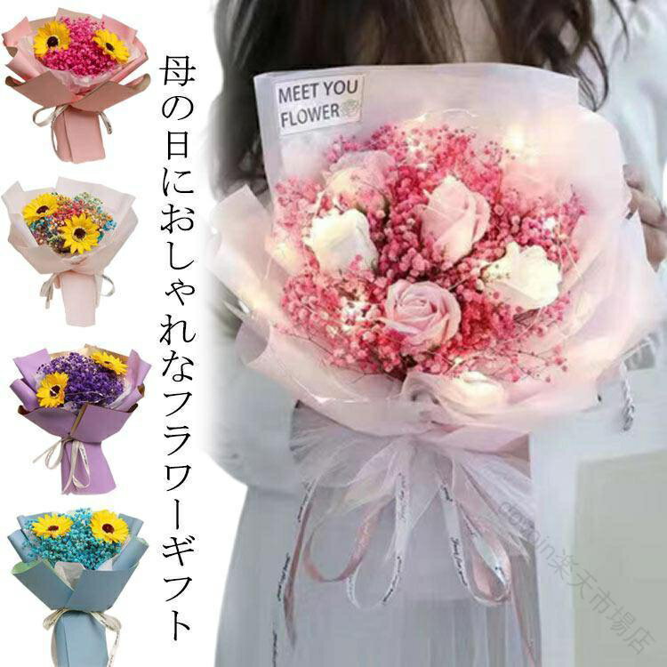 ソープ フラワー 3 点 セット ソープ フラワー ギフト LED ライト 付き ハンドバッグ 付き 花束 誕生日 母の日 ホワイトデー 新築祝い フラワー