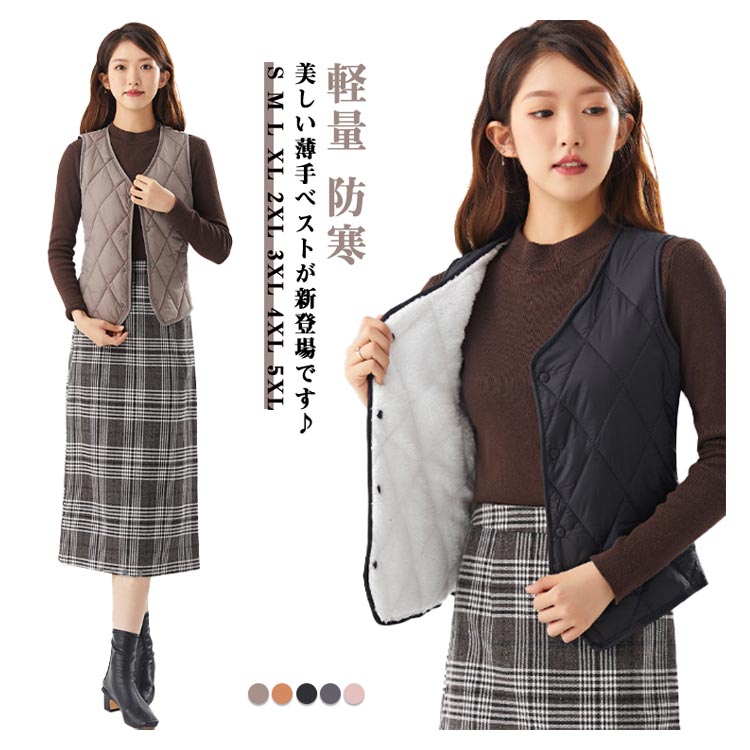べスト 中綿 中綿べスト レディース インナーベスト クルーネックベスト 防寒 中綿 重ね着 春 秋 冬 真冬 冬用 チョッキ ベスト 無地 コート ジャケット インナー オーバーベスト ダウンべスト 黒 薄手 パディング 保温性 大きいサイズ 30代 40代 50代