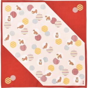 小布 豆柴と小紋玉 アカ (日本製) 【風呂敷50cm】 濱文様