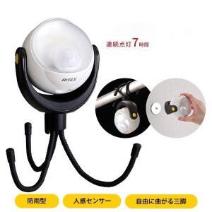 防犯ライト 人感センサー 三脚 電池式 防雨 取り付け自由 白色LED 連続7時間点灯