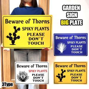 ブリキ看板 ガーデン プレート ガーデニング ハワイアン CAUTION イエロー ハワイ サボテン ディスプレイ 庭 おしゃれ 黄色