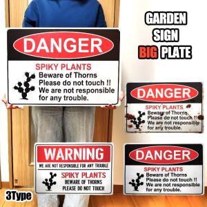 ブリキ看板 ガーデニング ハワイ サボテン ガーデン プレート ハワイアン CAUTION 壁飾り ホワイト 庭 白 アメリカン 雑貨