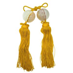 風鎮 オニックス 丸玉 (房:金茶色) オニキス 掛け軸飾り