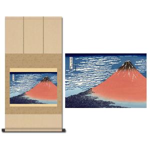掛け軸 凱風快晴 葛飾 北斎 山水 年中掛け 和 モダン 彩色 山水 赤富士 富士 おしゃれ 掛軸 年中 かけ 床の間 お土産 SS-G2-090s3