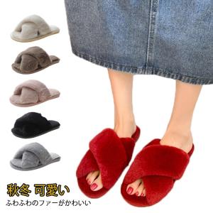 ファー ルームシューズ クロス フェイクファー あったか 冬 ふあふわ エコファー スリッパ ルーム 部屋用 サンダル オープントゥ 秋 秋冬 冬 可