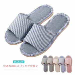 スリッパ 綿麻 メンズ レディース ルームシューズ ボーダー柄 カップル ペア リネンスリッパ 室内履き 滑りにくい 静音 上品 柔らかい おしゃれ