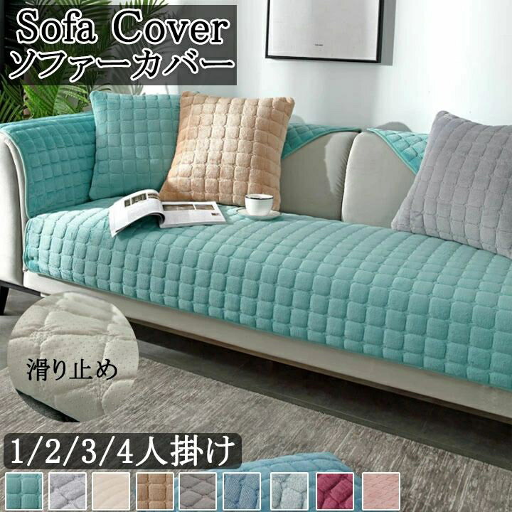 ソファーカバー セパレート かけるだけ ラビットファー エコファー もこもこ あったか ふわふわ 柔らか 汚れ防止 滑り止め 滑らか 暖かい 長方形 正方形 1人掛け〜4人掛け 肘掛け 肘なし L字カウチ ソファーパッド ソファーシート 犬猫対策
