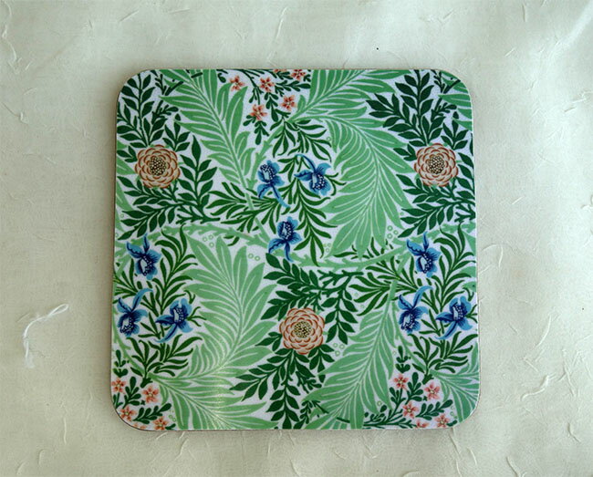 iam Morris Woodpecker in Gray Orange and Ivory Soft Coasters, Multicolor