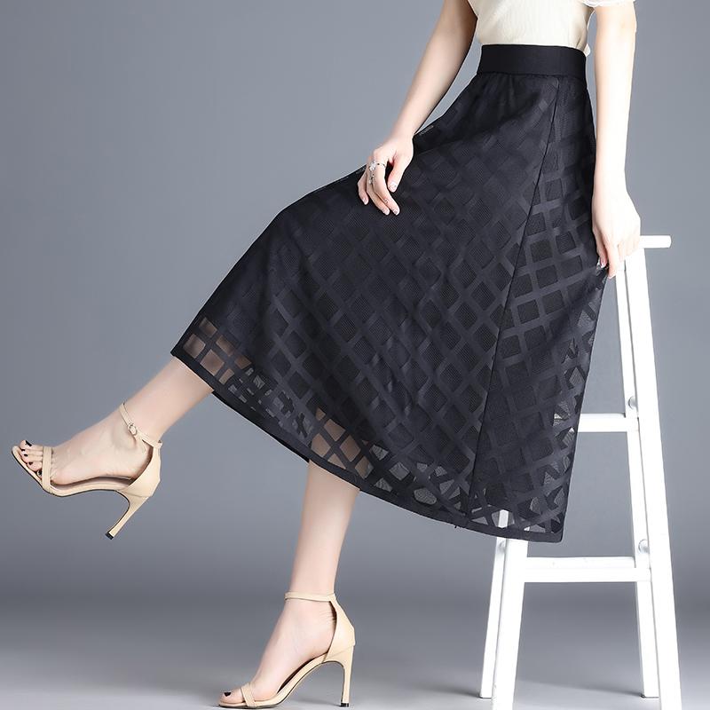 シアーチェックバックレースUPマーメイド SK BLK