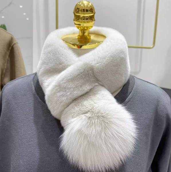【P2倍&クーポン有】ファーマフラー ファーボンボン 無料 個性的 もこもこ ふわふわ 目立つ 高見え 格上げ 防寒 暖かい スタイル 使いやすい 無地 色展開 ブラック グレー ベージュ オレンジ ピンク ブルー ワインレッド シンプル エレガント クラシカル