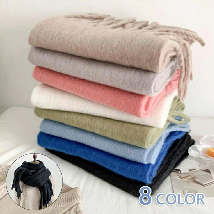 マフラー レディース 無地 ストール 大判 ショール 羽織り 厚手 もこもこ ふわふわ フリンジ 可愛い コーデ 防寒 暖かい 秋冬新作 きれいめ おしゃれ