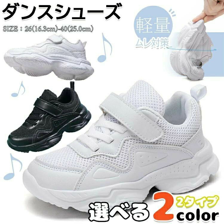 ダンスシューズ ヒップホップ キッズ ダンス k-pop 黒 白靴 スニーカー ブラック 18.0cm 24.5cm チアダンス シューズ 白 韓国 幅広 ローカット 通気性