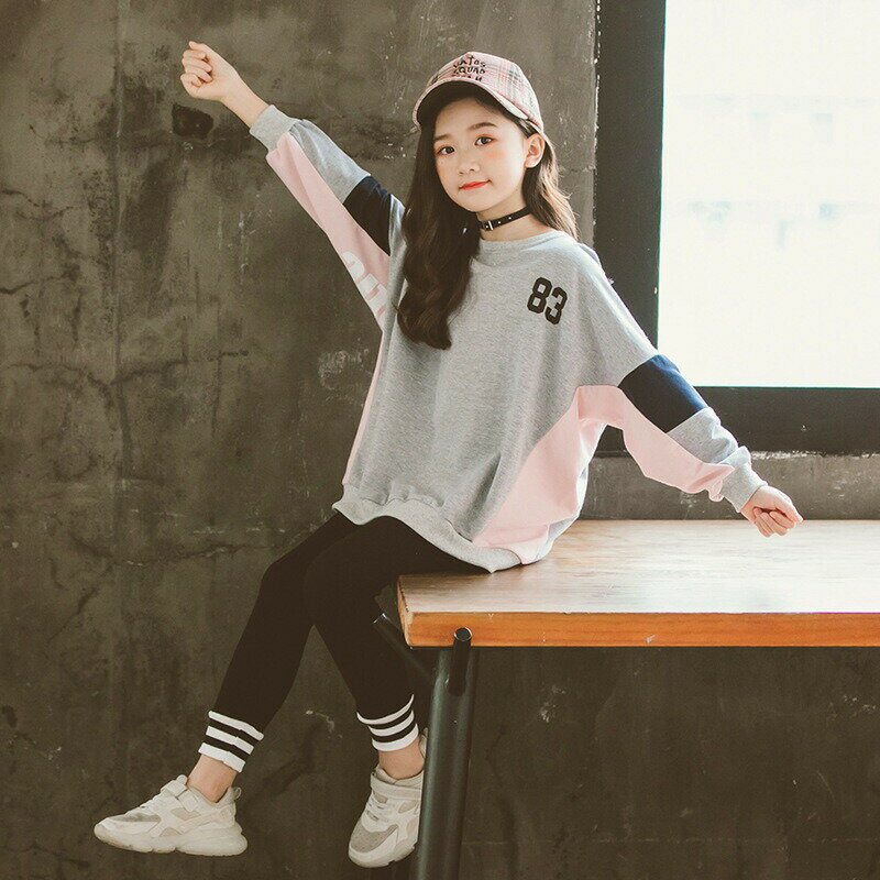 韓国風 子供服 おしゃれ 女の子 セットアップ 2点セット 上下セット キッズ 長袖 スウェット トレーナー レギンス 子ども おしゃれ かわいい 83 ルームウェア 普段着 秋 冬 薄手 110 120 130 140 150 160