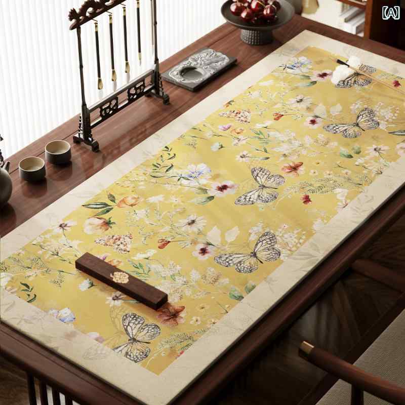 書道マット モダンチャイニーズ 禅風 レトロ フェルト ウールフェルト 筆文字 習字練習用 書斎 学習用 墨吸収 速乾 墨漏れ防止 デスクトップ保護 厚手 耐久性 長方形 灰茶 青柄