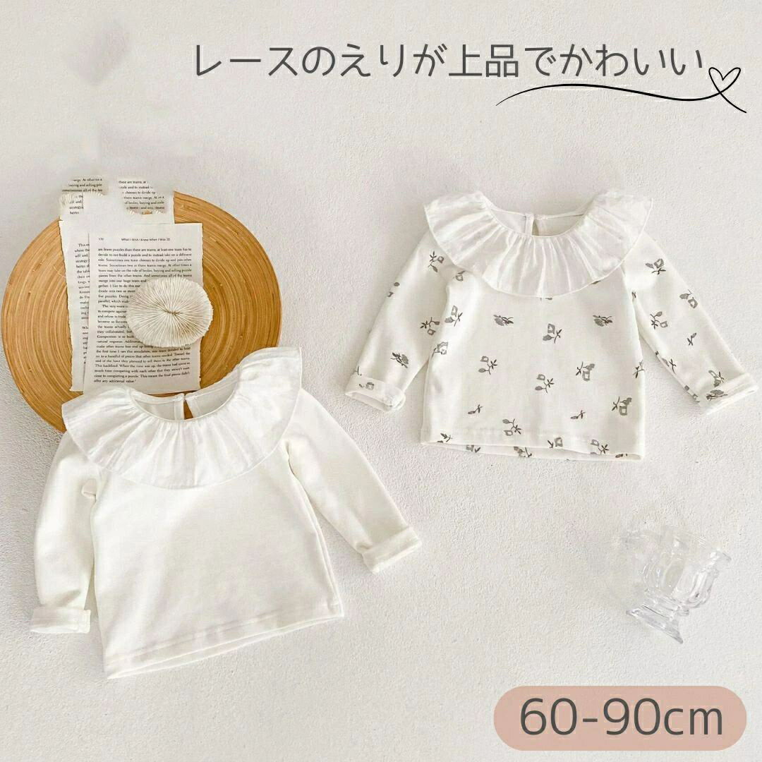 赤ちゃん 女の子 服 ベビー服 ベビー 長袖 ブラウス トップス フリル Tシャツ えり付き おしゃれ かわいい キッズ 子供 子ども 服 ホワイト 花柄 春 秋 冬 子ども服 子供服 姉妹 シンプル 保育園 幼稚園 出産祝い 60cm 70cm 80cm 90cm