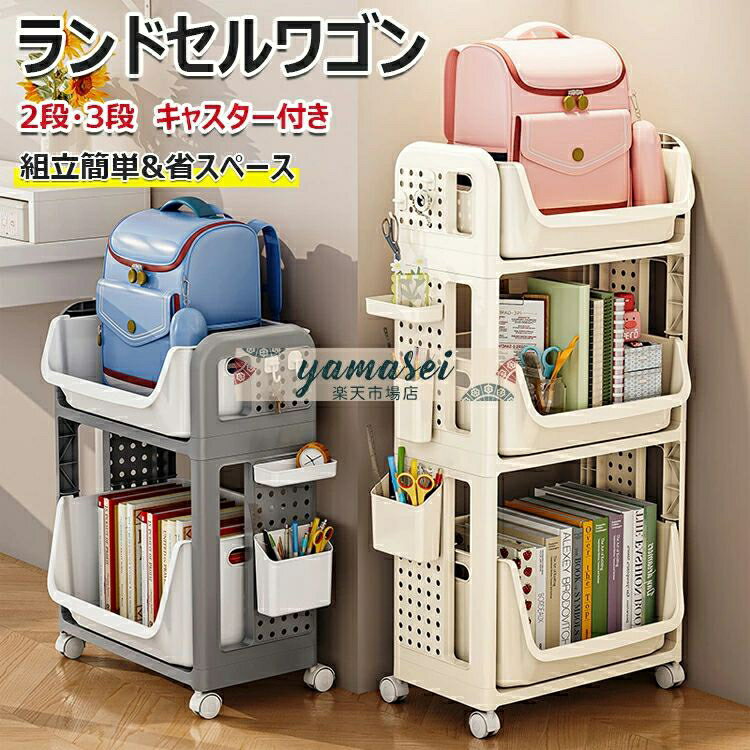ランドセルラック ファイルラック 2段 3段 おしゃれ 北欧 書類棚 収納棚 ランドセルワゴン ファイルワゴン 棚 移動 小物収納 文房具収納 書類収納ワゴン 学生収納ラック 引き出し キャスター付き 収納ボックス ランドセル収納 隙間 大容量 簡単組立 オフィス/学校用 デスク整