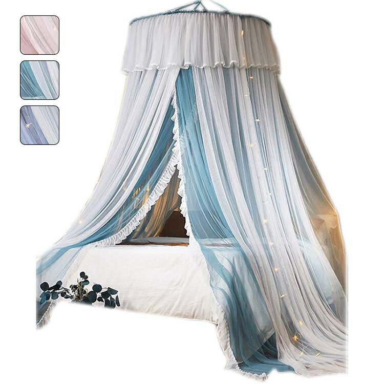 全品対象クーポン発行/ 天蓋カーテン モスキートテント 夏用 ダブルカーぜ 蚊帳 防蚊 防虫 インテリア 着地式 レースフリル