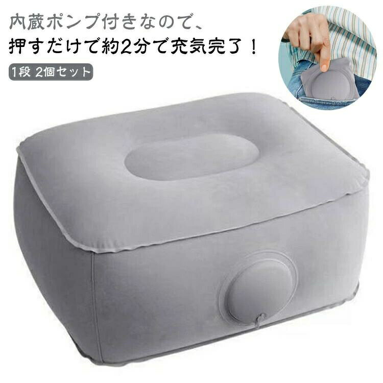 2個セット フットレスト 折りたたみ 内蔵ポンプ 押すだけ 空気 エアー クッション 1段 高さ20cm 足置き 足置きクッション エアークッション 足置き台 飛行機 車 電車 新幹線 オフィス 会社 デスク デスクワーク オットマン